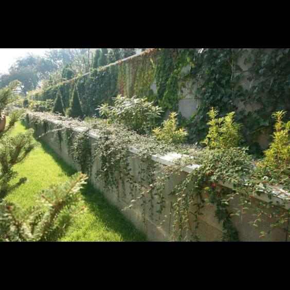 - Bohato zazelenený dvojstupňový múrik tvoriaci hranicu pozemku niekoľko týždňov po vysadení